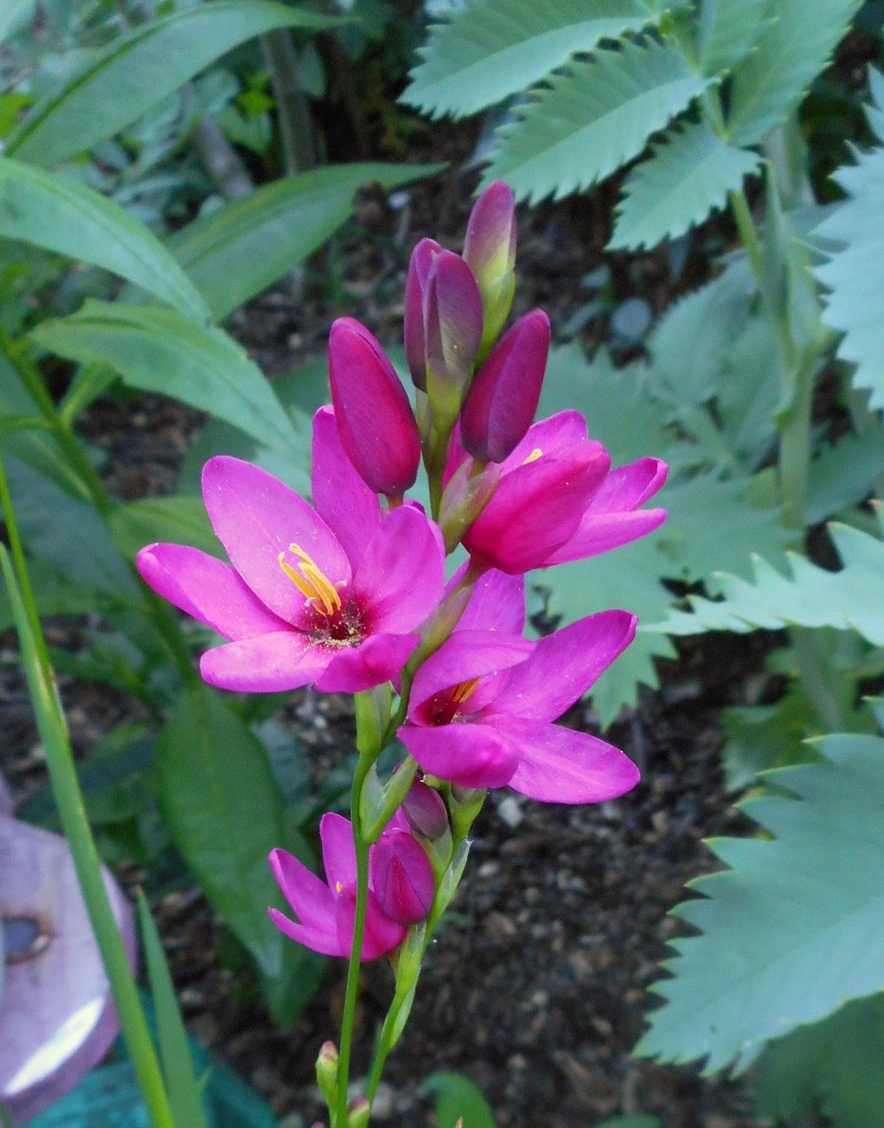 I share your joy in discovering Ixia, Grace: some years ago, I had some planted as part of one of the kid's fundraiser project. I was entranced by the delicate flowers on their strong, slightly wiry stems. Mine were mixed, but none as strongly colored as your lovely deep pink one. Sedums are definitely the answer for places that are hard to grow in. They make it look easy to garden, right?